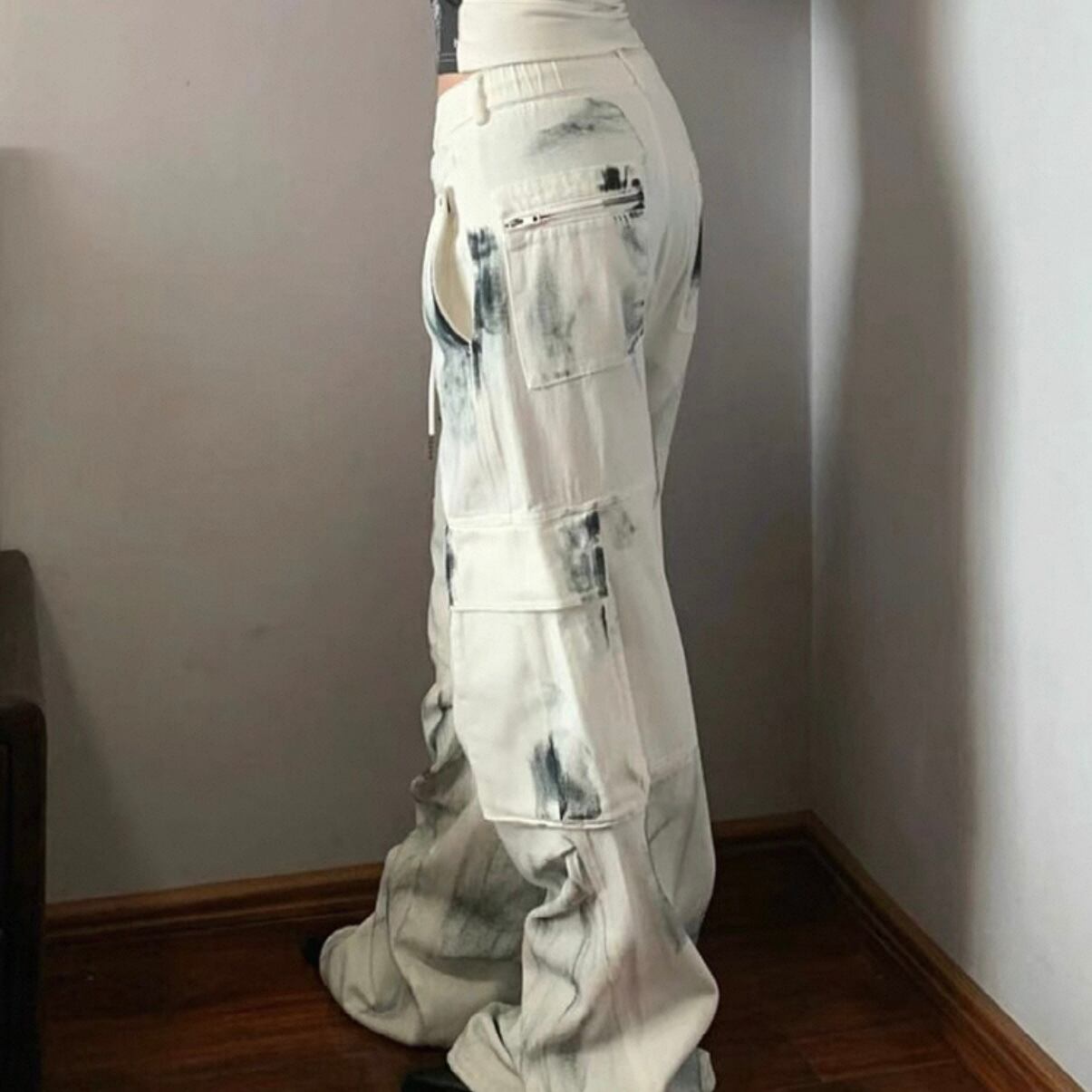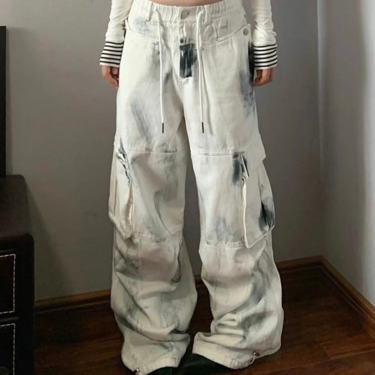 ワイドレッグジーンズ カーゴデニム ストリート ユニセックス Y2K タイダイ染め ワークパンツ