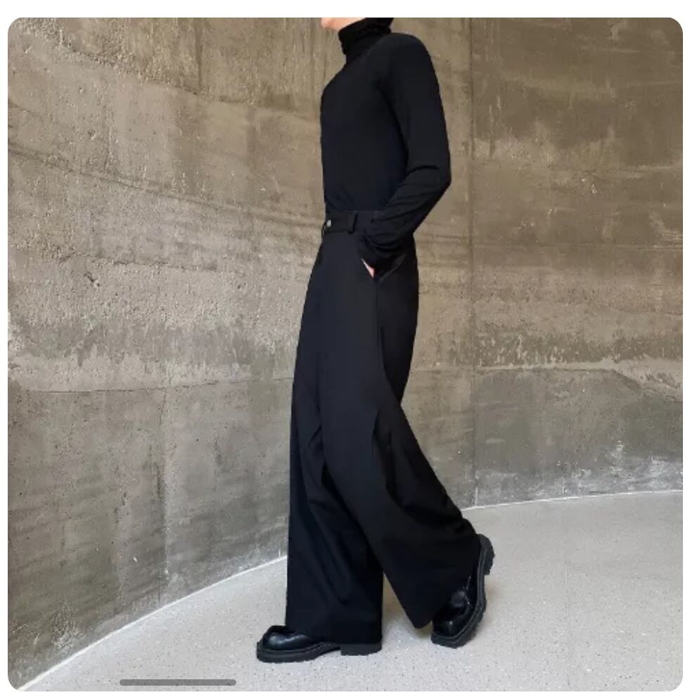 変形ワイドパンツ バギー スラックス ブラック シンプル ワイドレッグ ハイウエスト