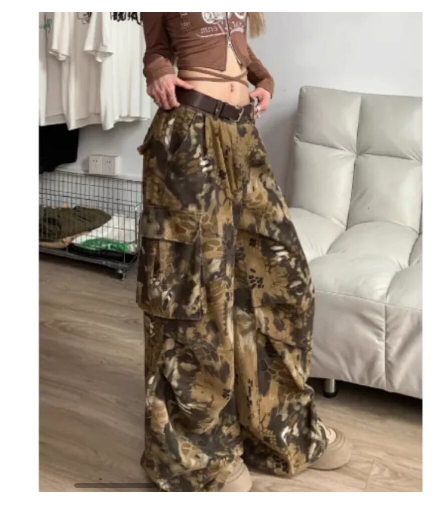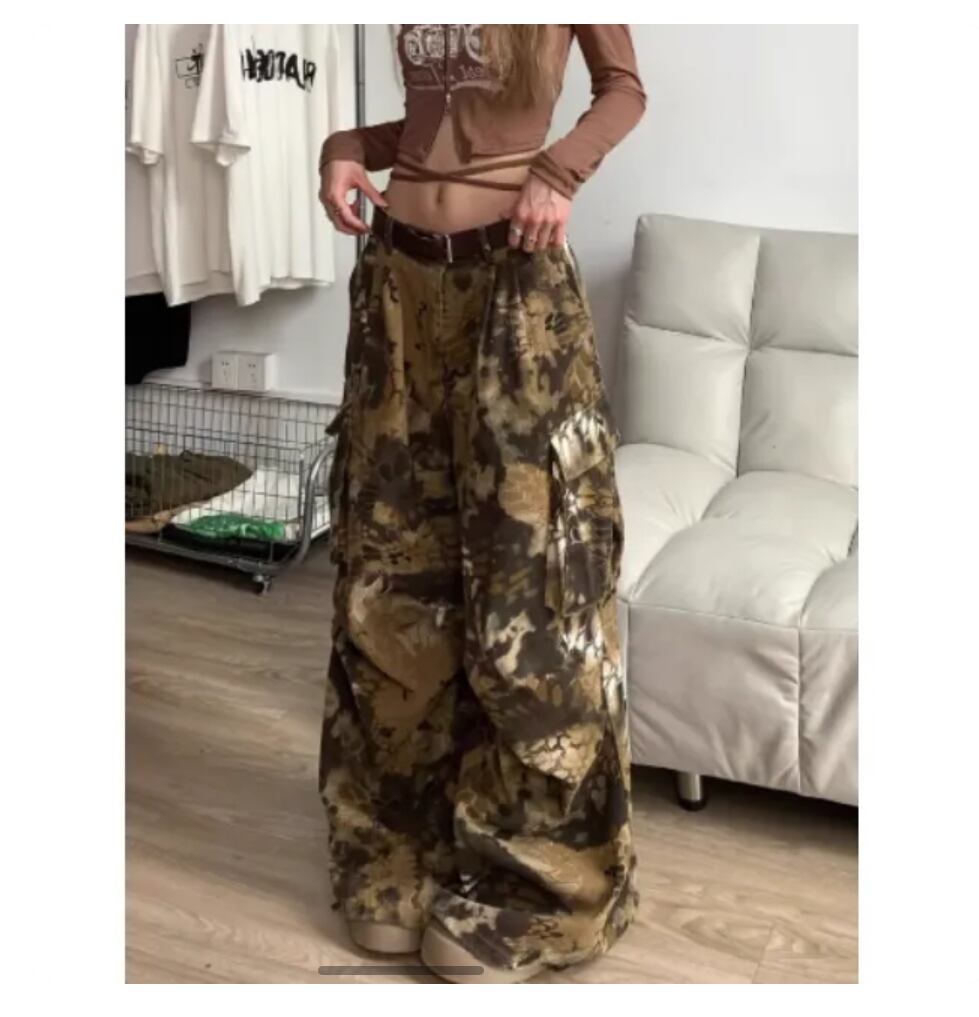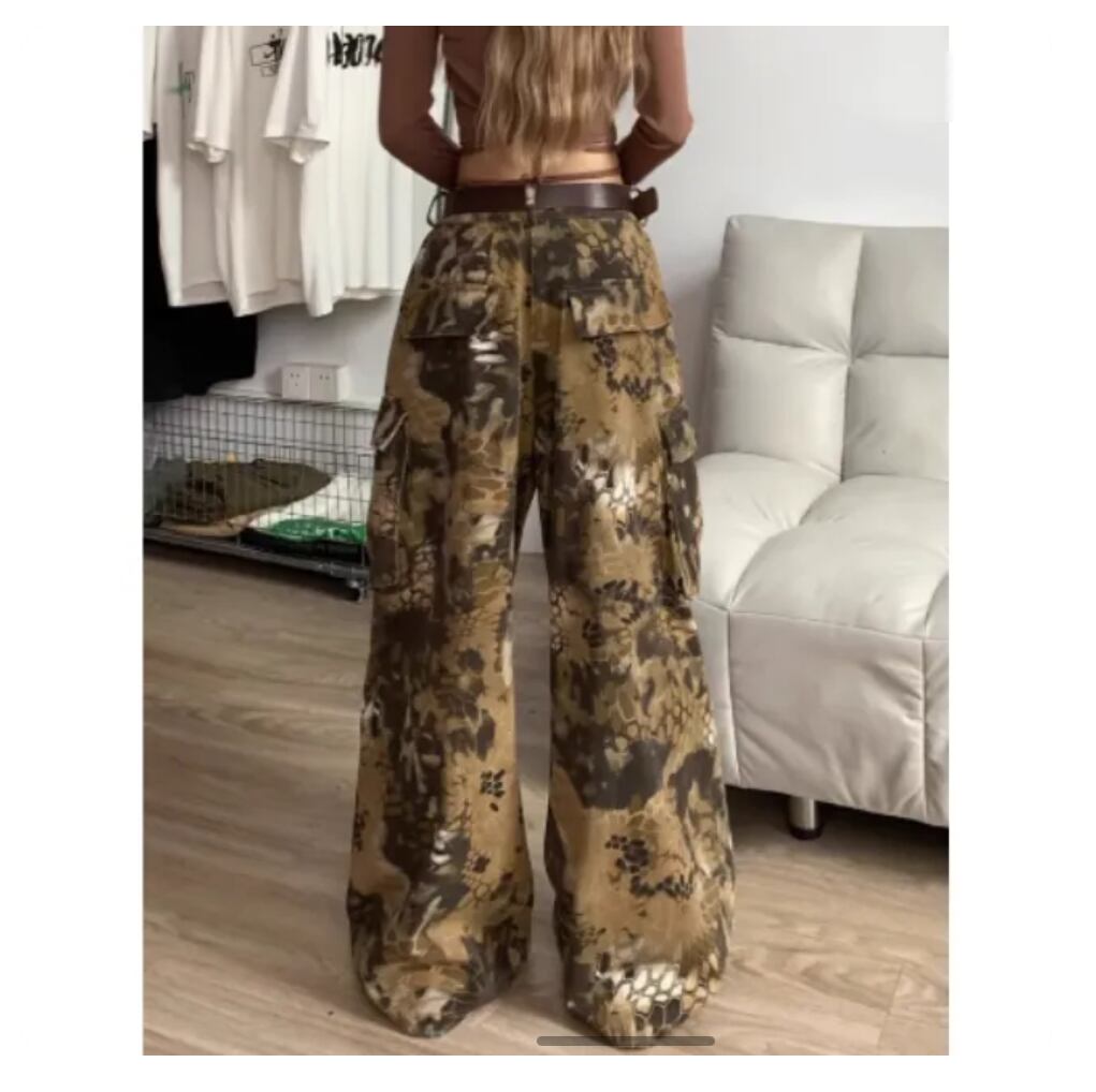 オーバーサイズジーンズ ルーズジーンズ 迷彩柄 ヒップホップ ユニセックス ストリート