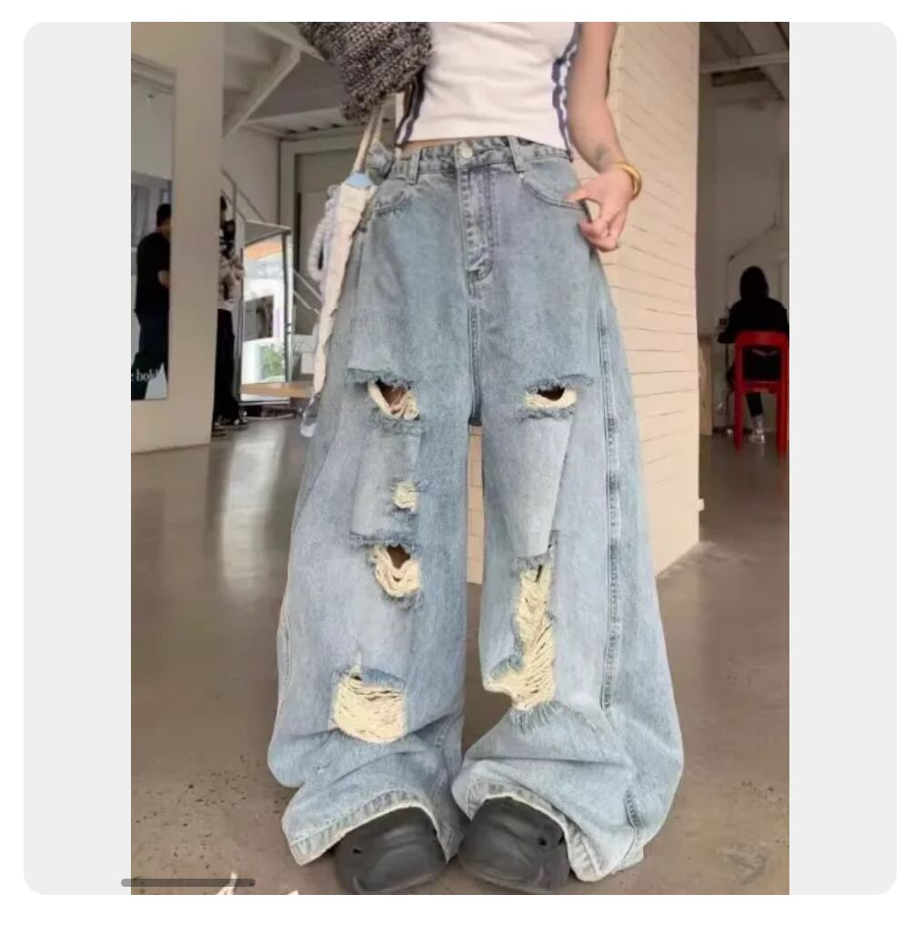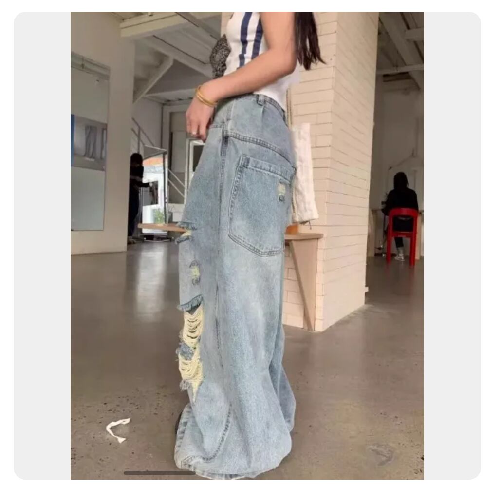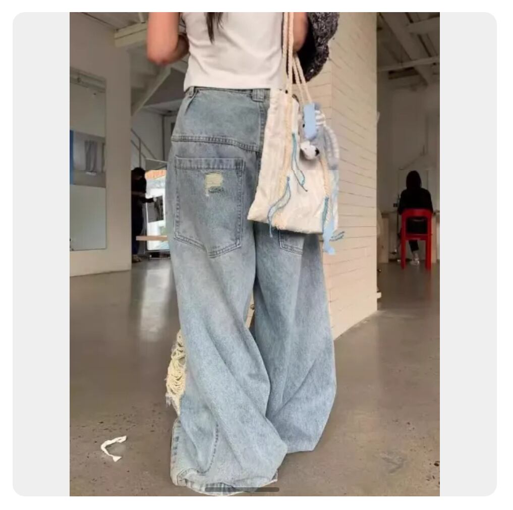 ダメージ加工 ワイドデニムパンツ ヴィンテージ風 ゆるだぼシルエット