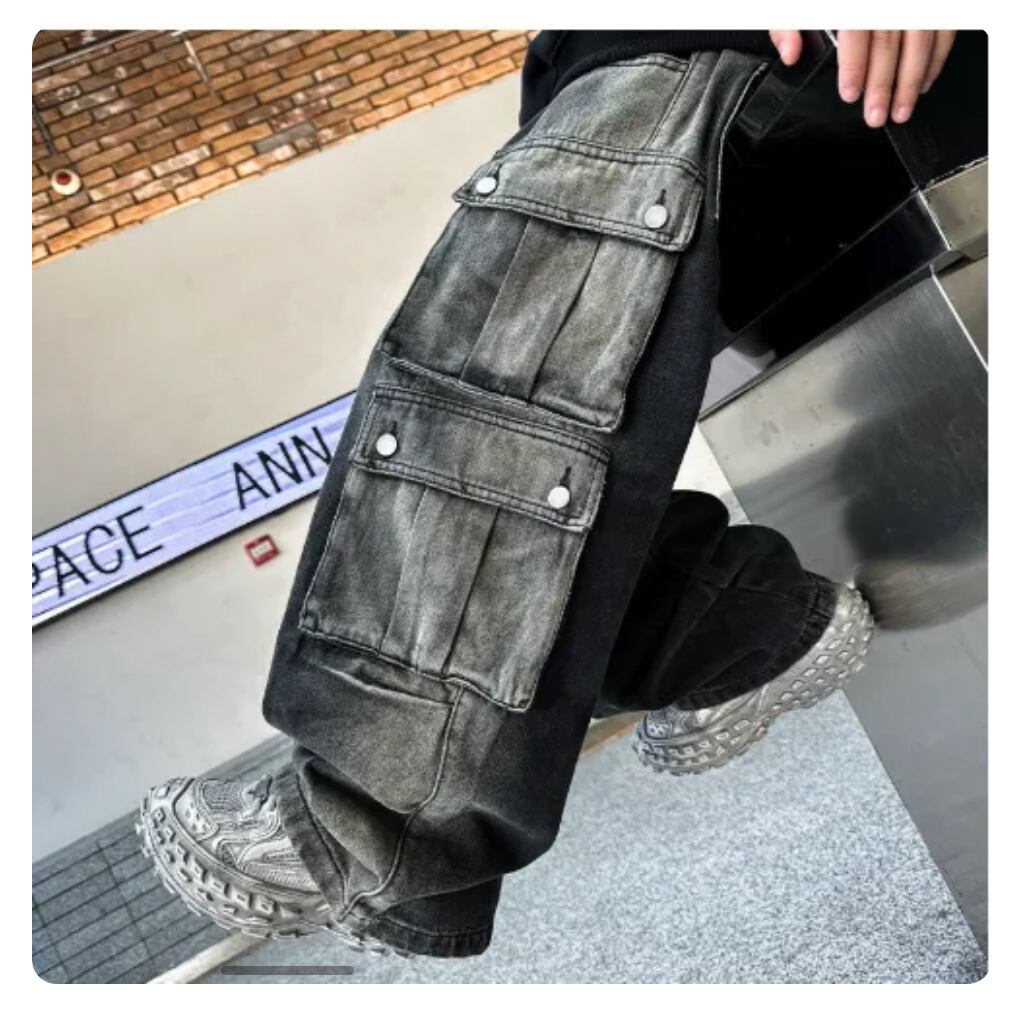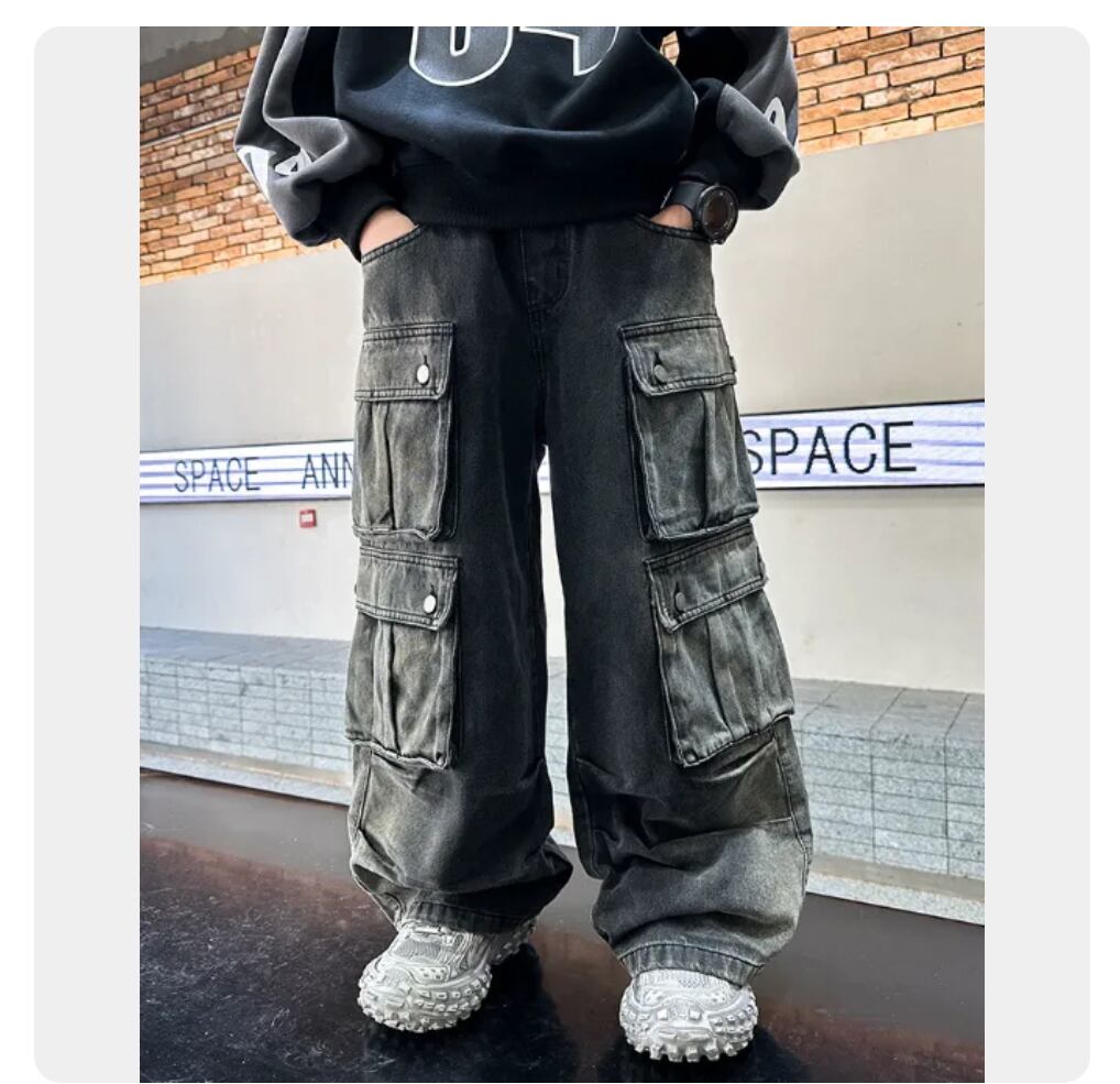 キッズジーンズ ヴィンテージ風 ビッグポケット ゆるダボ カーゴデニム