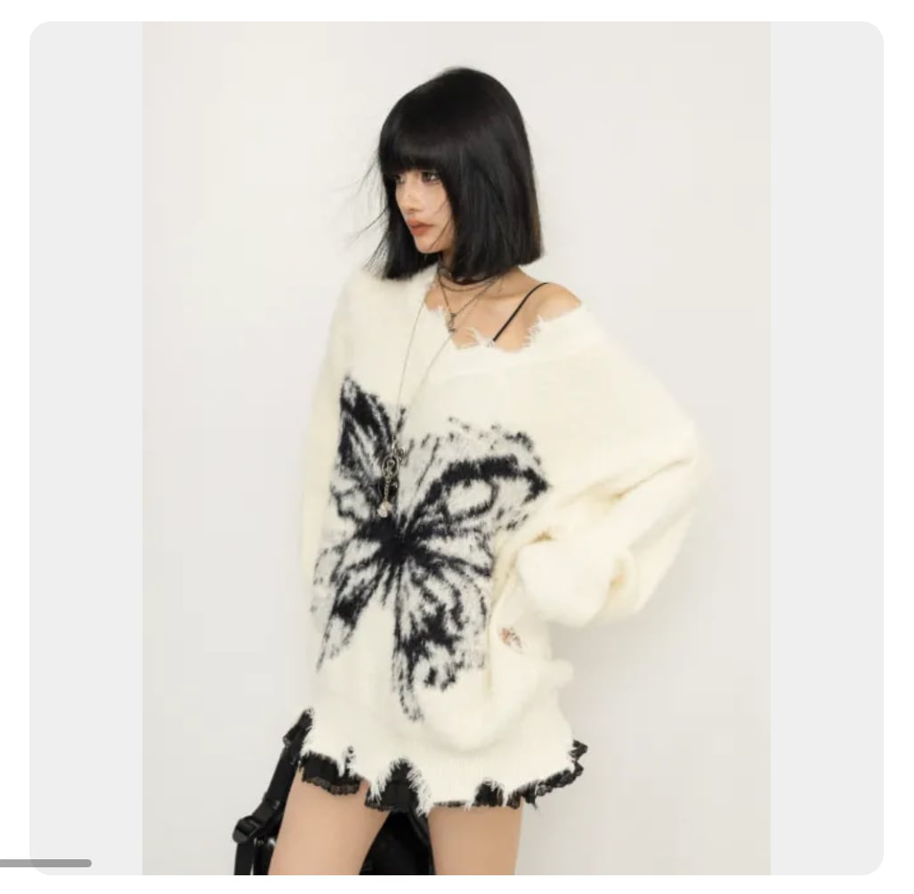 オフショルダーニット バタフライ 蝶々 ルーズフィット ダメージ加工