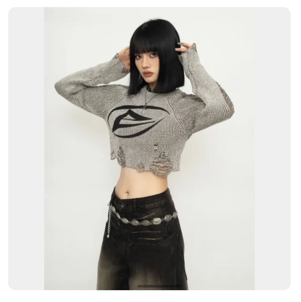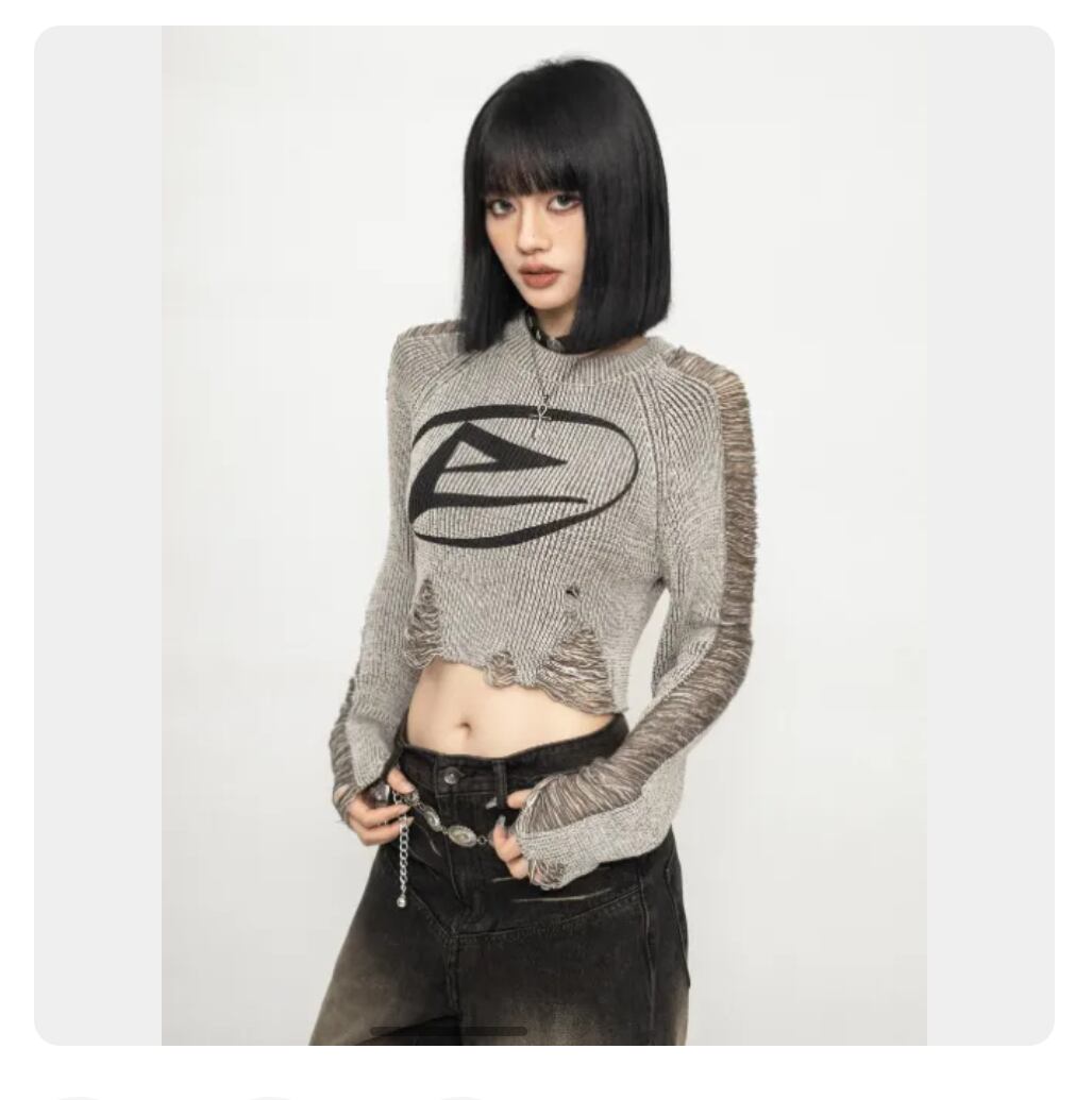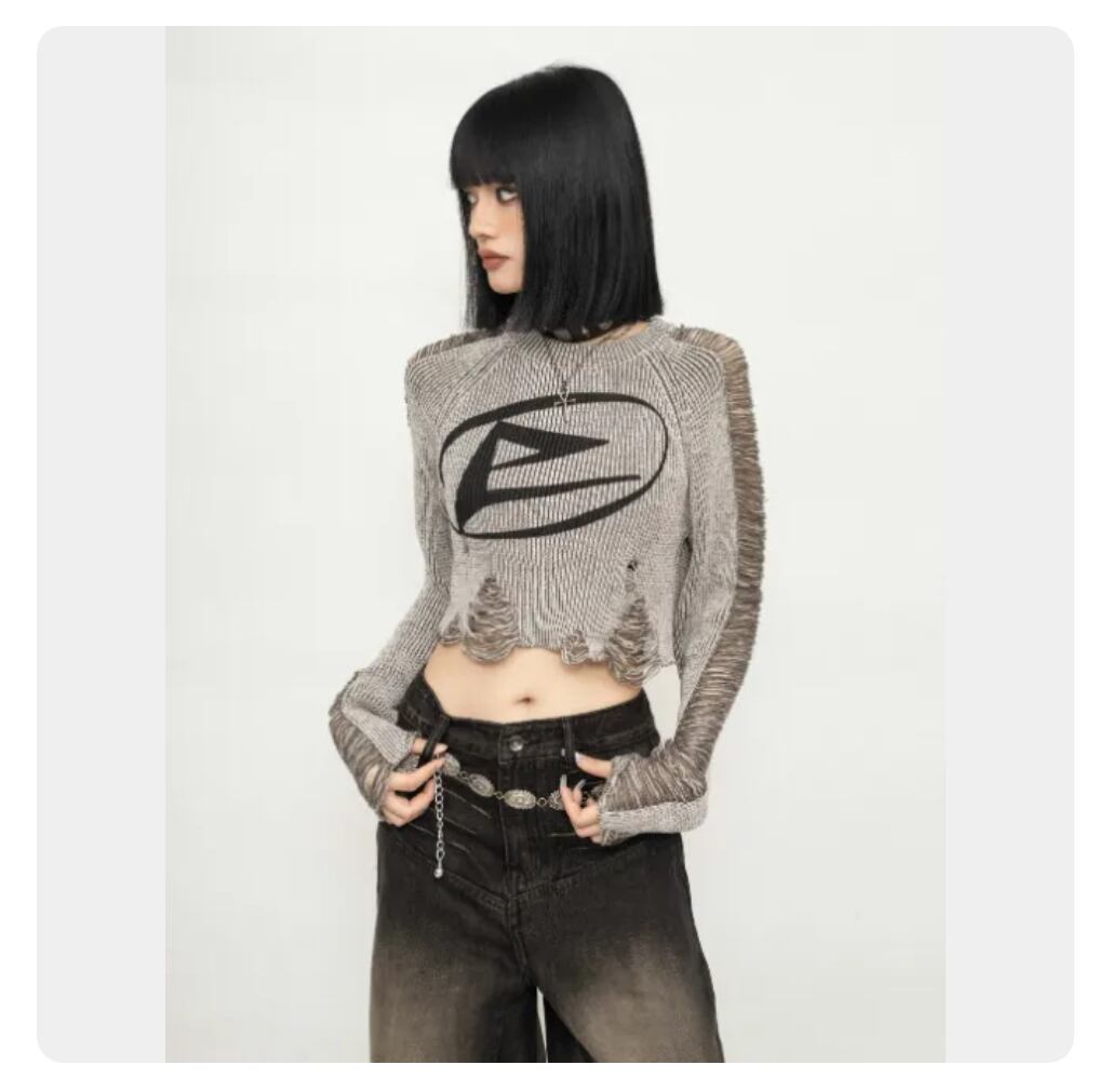 ダメージニット ショートプルオーバー 穴あきニット Y2K ストリート クロップド