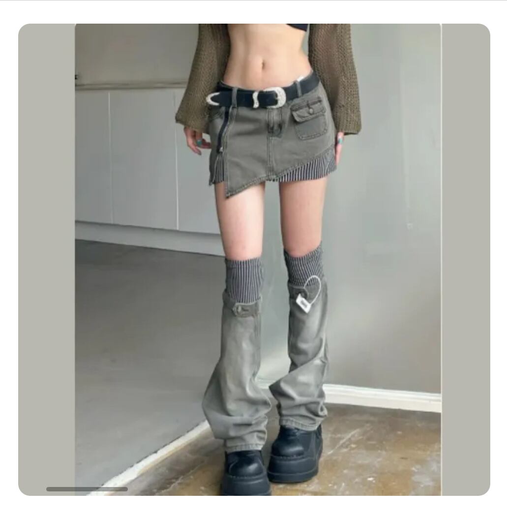 レイヤード風 ミニスカート レッグウォーマー ストライプ レイヤード ストリート Y2K オーバーサイズ