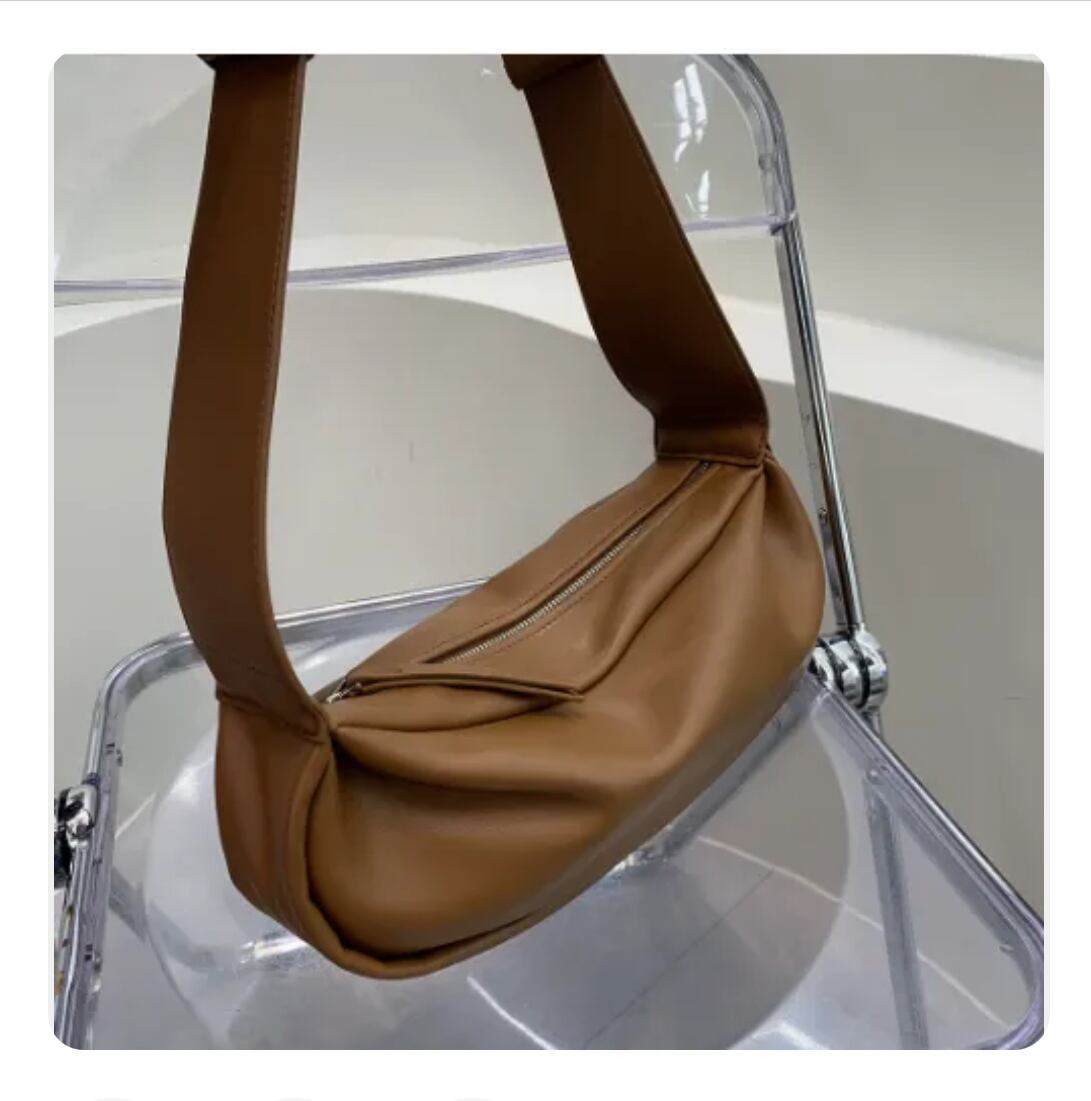 PUレザーを使用した、洗練されたシルエットのワンショルダーバッグ。