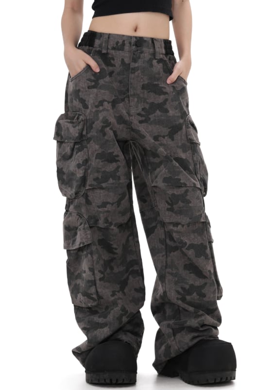 迷彩パンツ マルチポケット イージーパンツ 後ろゴム ドローコード