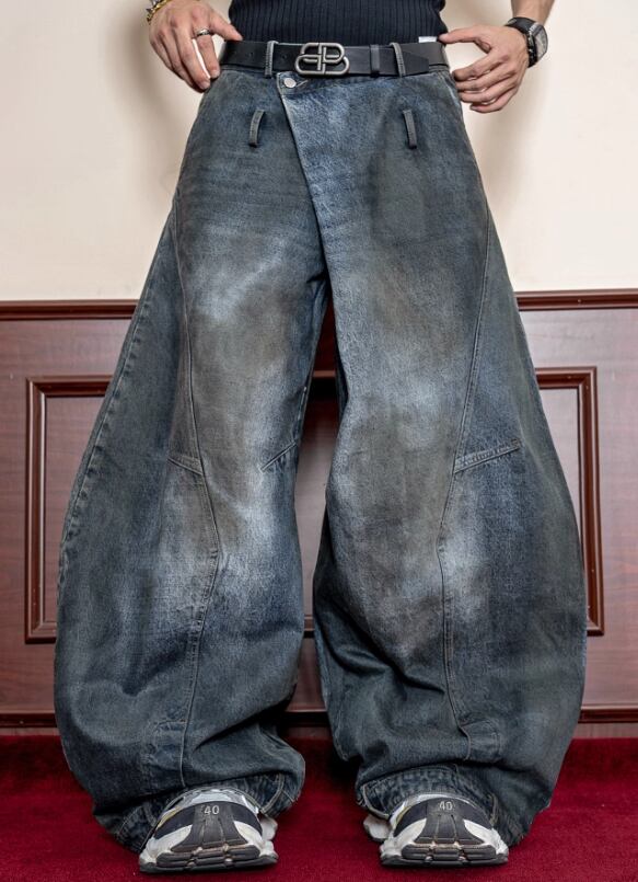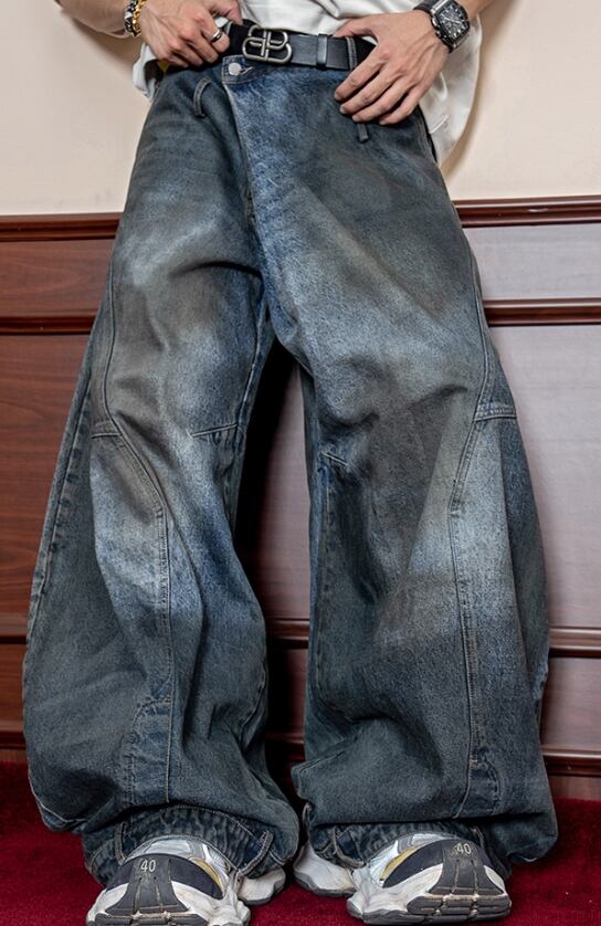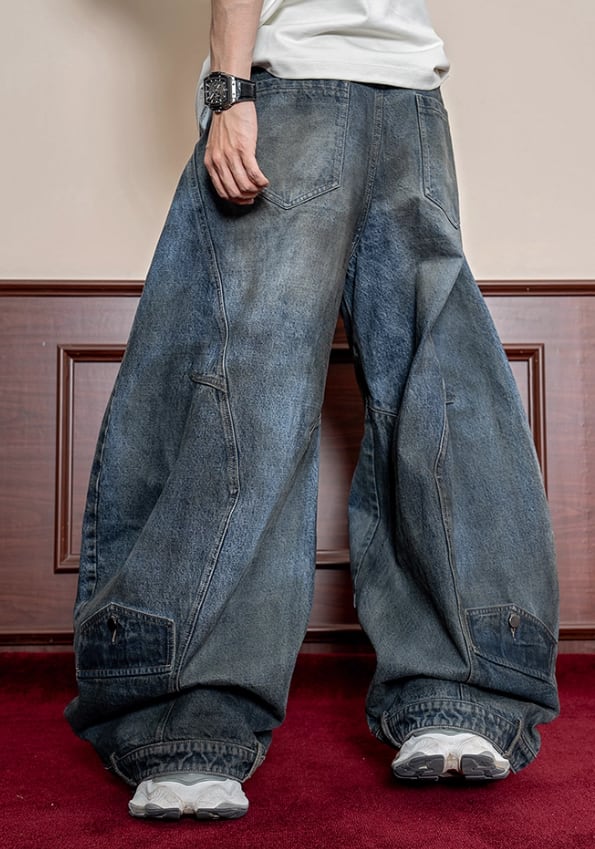立体シルエット ルーズフィット ヴィンテージウォッシュ デニムパンツ