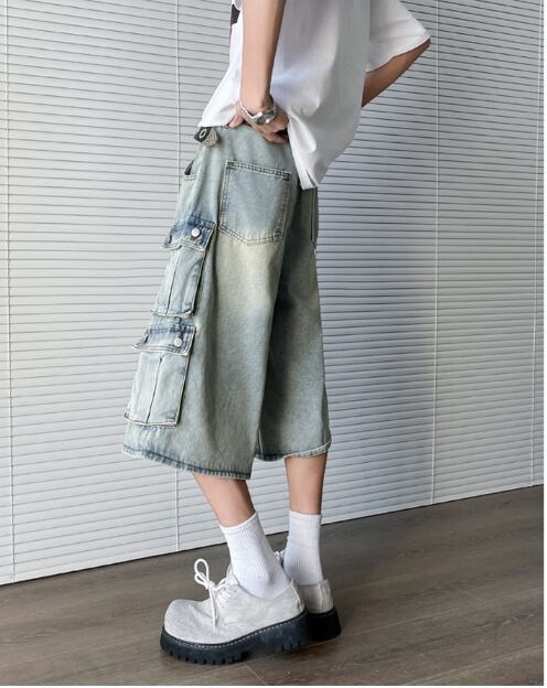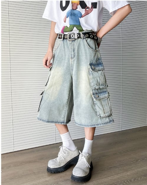 ワイドカーゴ デニム ヴィンテージウォッシュ ストリート ミディ丈