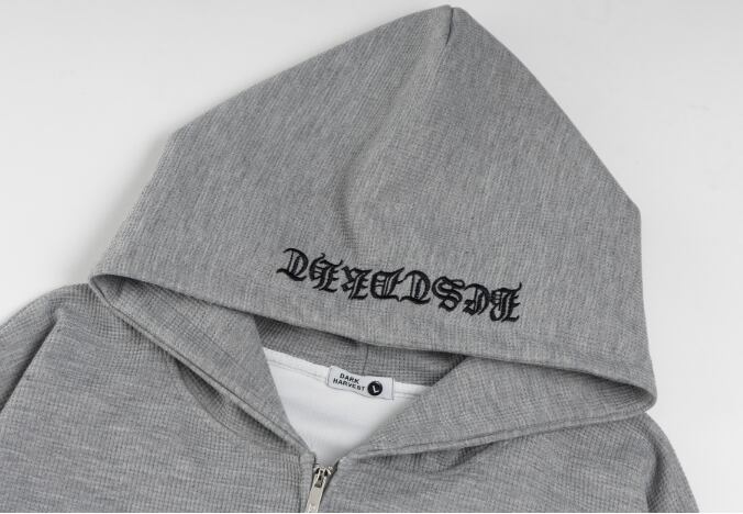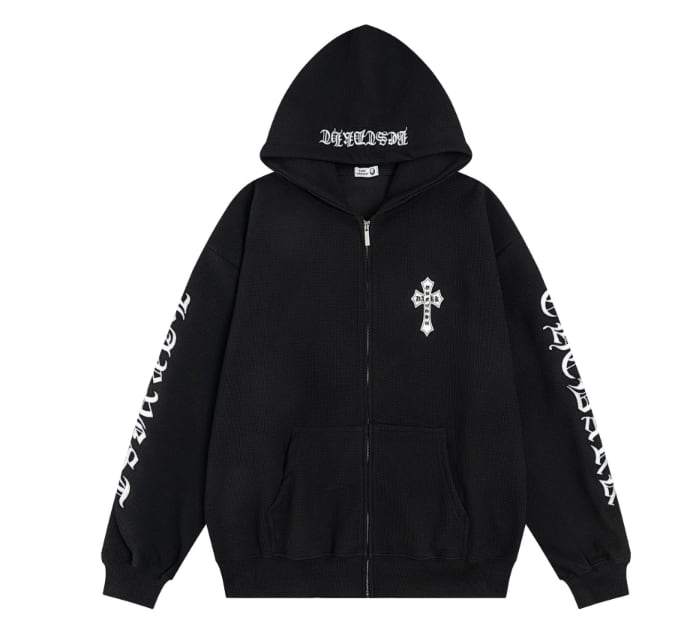 クロス刺繍ジップパーカー 両袖ロゴデザイン ゴシック ストリート