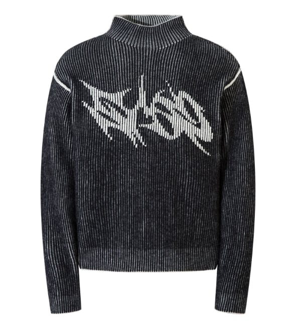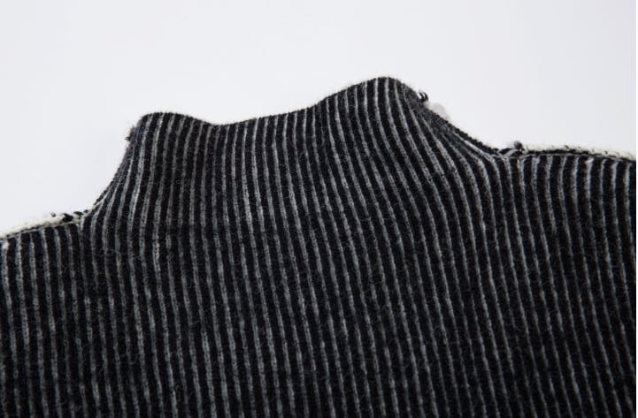 フロントアート プルオーバー ハイネック 縦リブニット レトロ