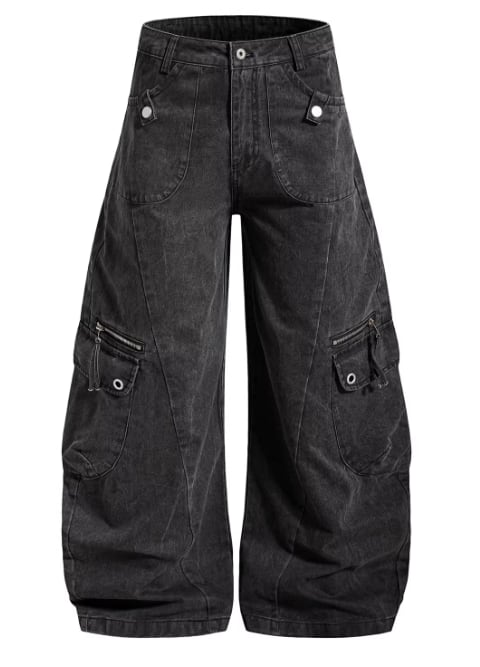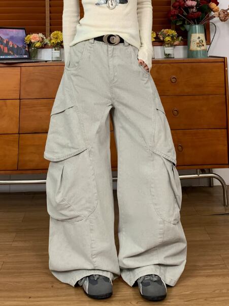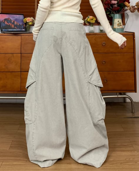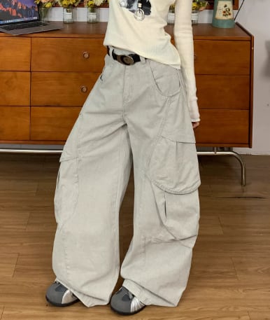 ビッグシルエットカーゴパンツ バルーン 個性派 メンズライク 立体ポケット ストリート