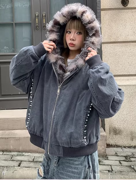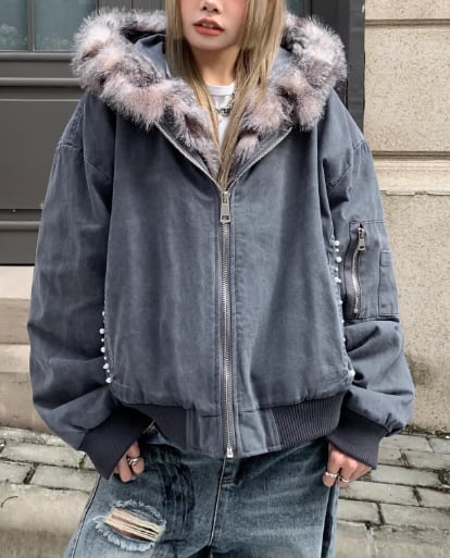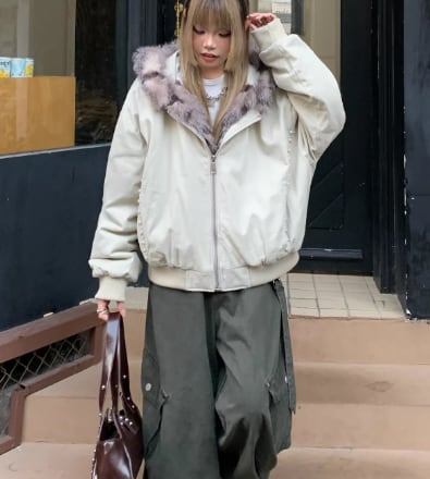 ファー付き フーデットコート ブルゾン 防寒 ストリート