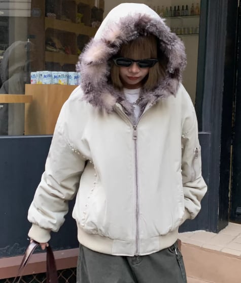 フードとファーの組み合わせで、あたたかさとおしゃれ感を兼ね備えたアイテムです✨