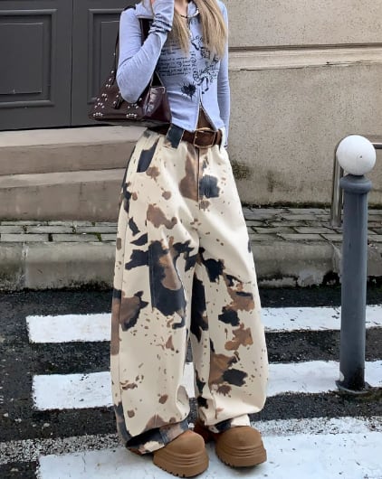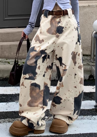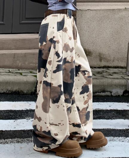 牛柄カジュアルパンツ アメリカンレトロ ゆったり 個性的 クール