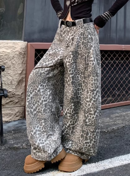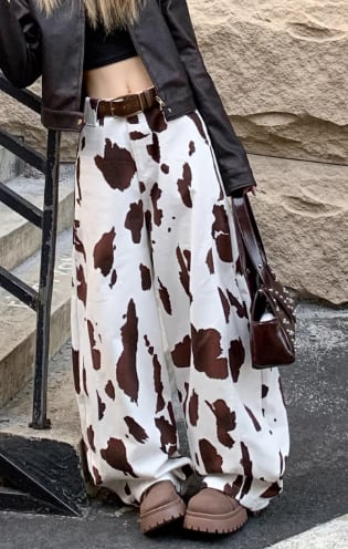 カウプリント ストリートルーズパンツ 韓国 牛柄 ヒョウ柄 モード系