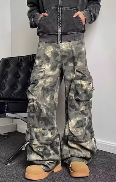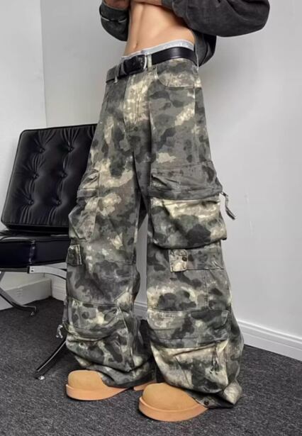 ビッグポケット カーゴパンツ ワイドレッグ ストリート ゆったり 韓国
