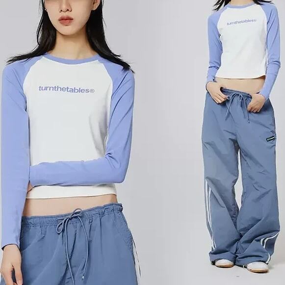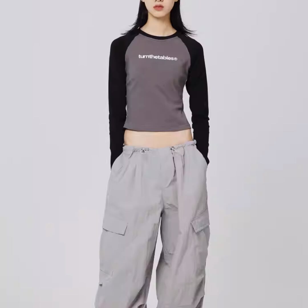 ラグラン トップス Tシャツ 長袖 ロゴ ツートーン バイカラー シンプル ストリート