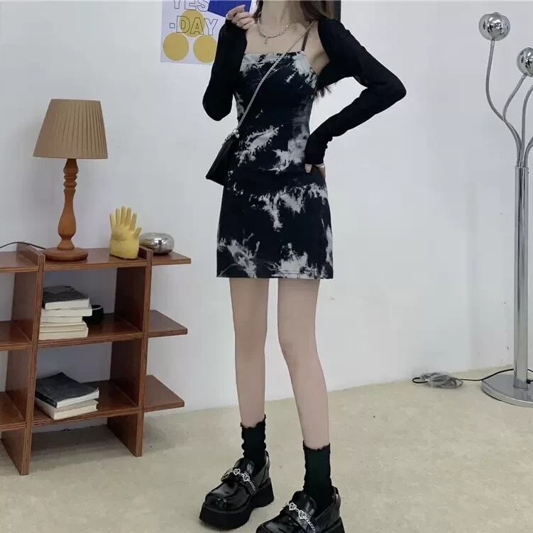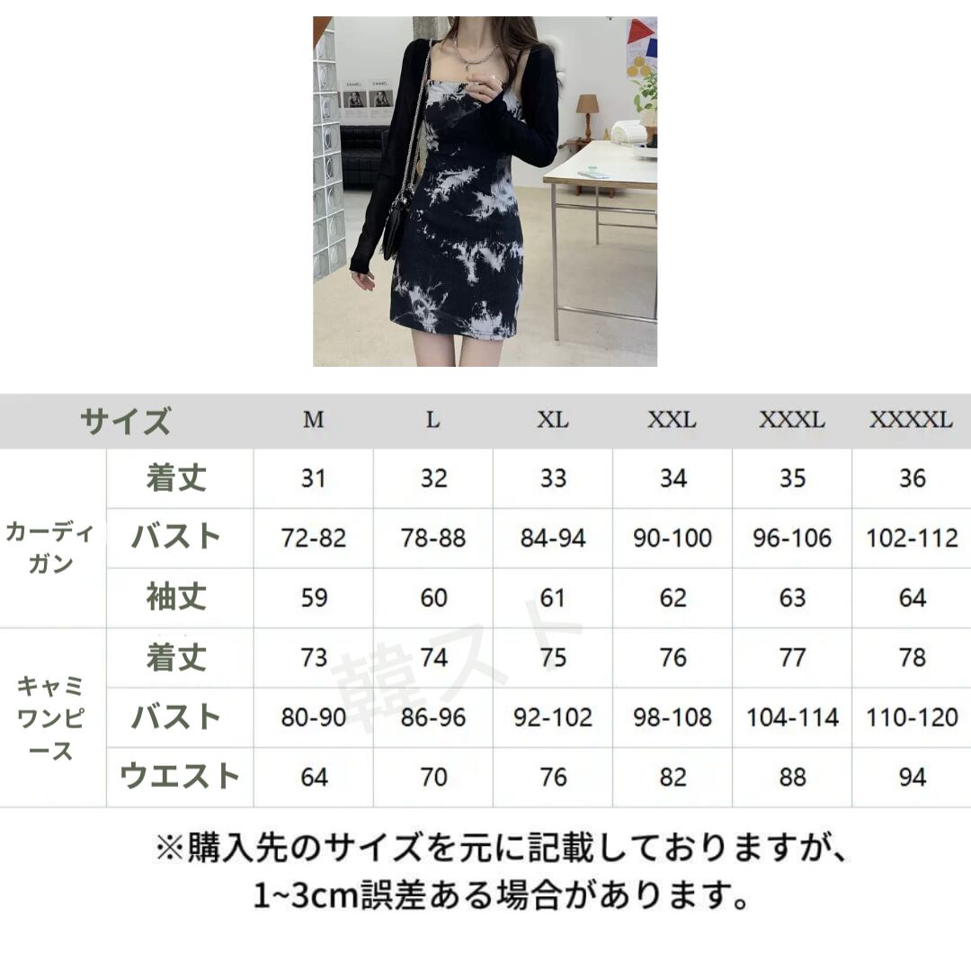 キャミワンピース ミニワンピース カーディガン セットアップ ペイント風 まだら ブラック ホワイト