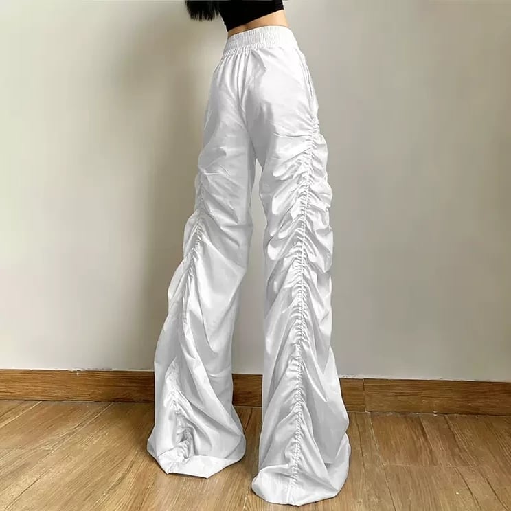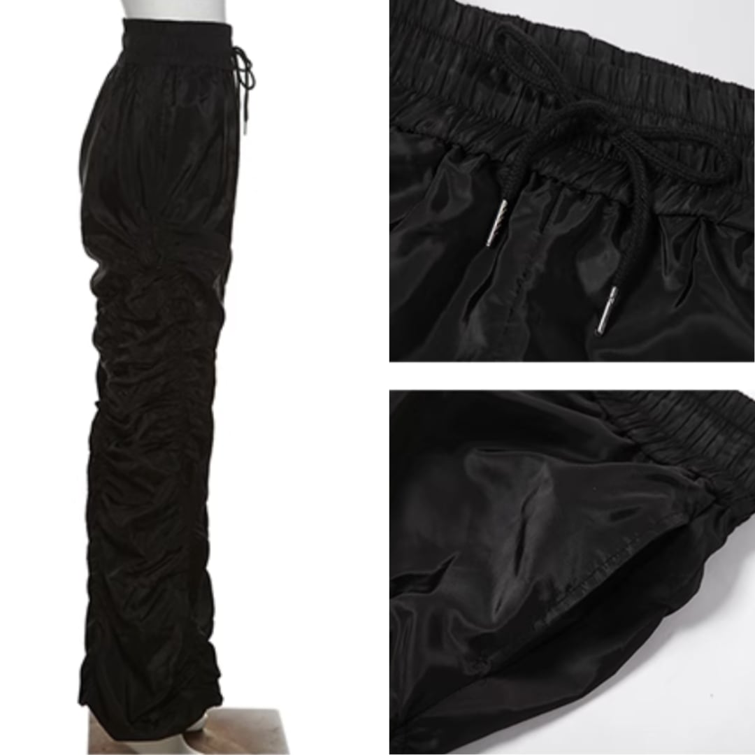ワイドパンツ シャーリング ルーズ ウエスト紐 ストリート 韓国