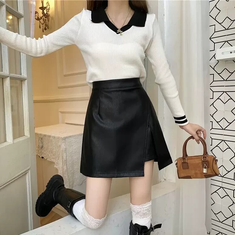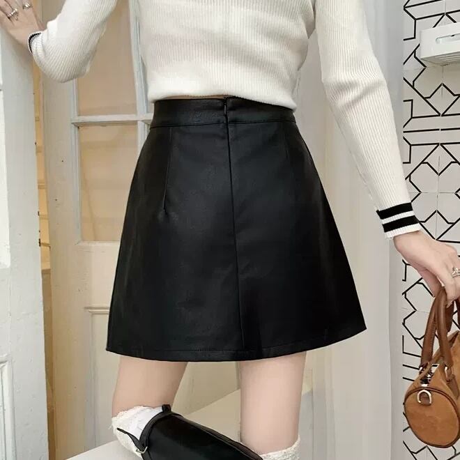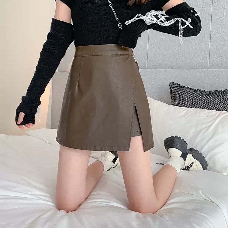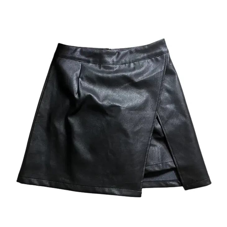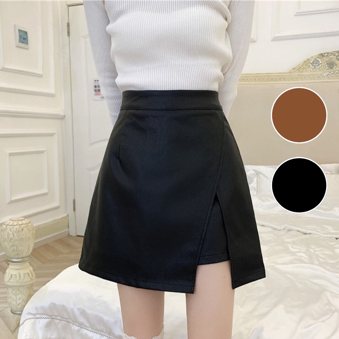 ミニスカート サイドスリットレザー ブラック インナー付 巻きスカート風