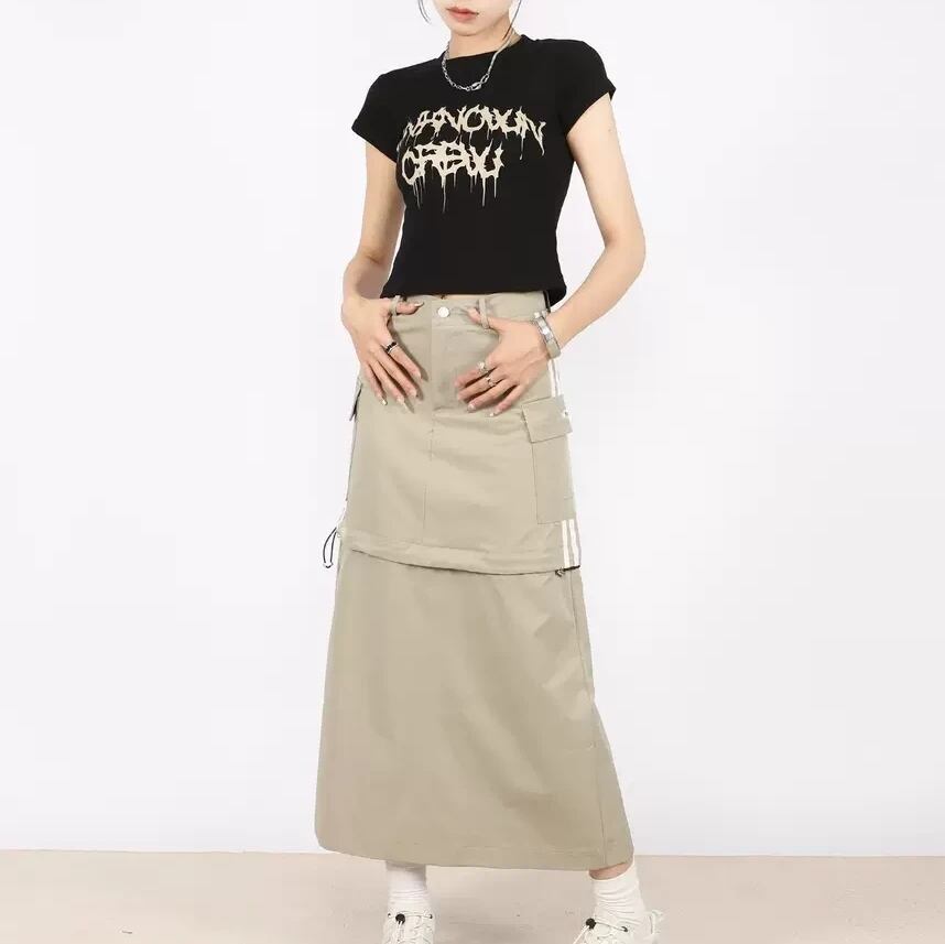 スポーティ スカート 2WAY ロングスカート ミニスカート ラインデザイン ジャージ風