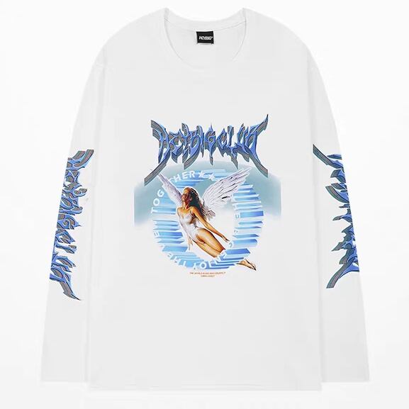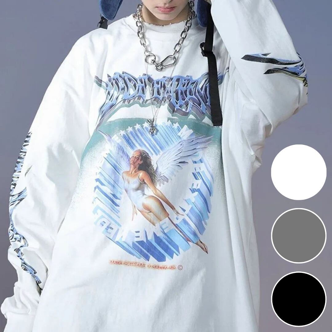 オーバーサイズ トップス 天使プリント 袖プリント ストリート ユニセックス
