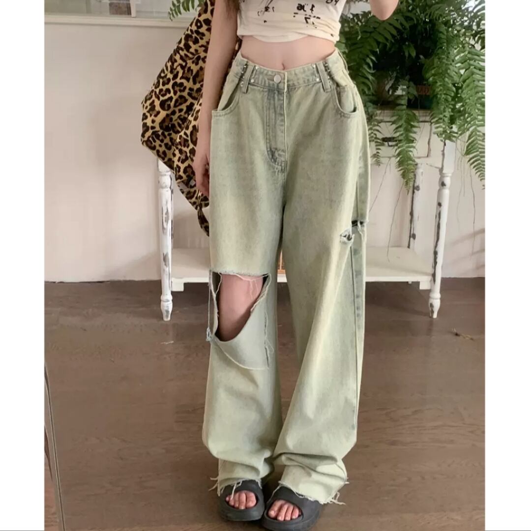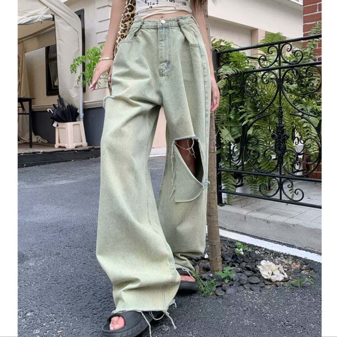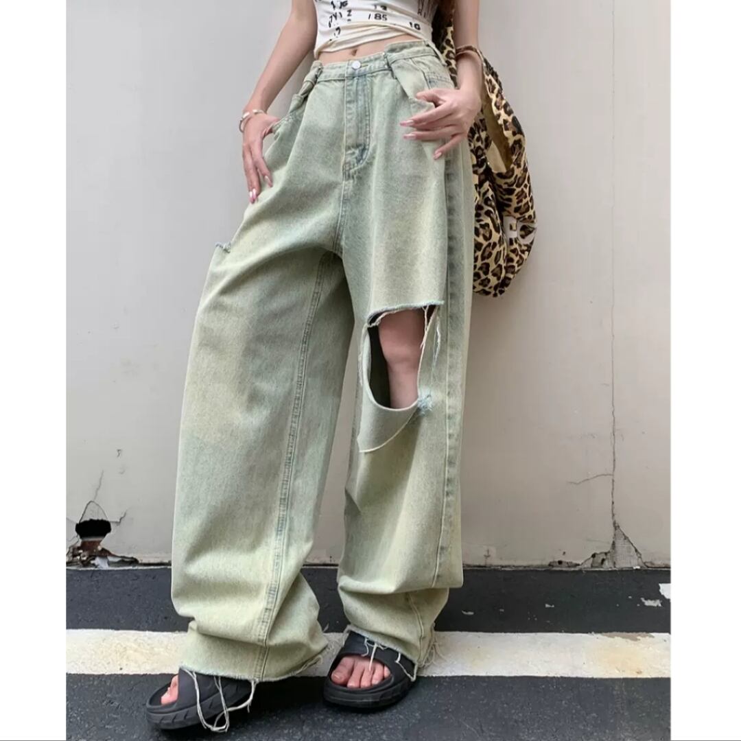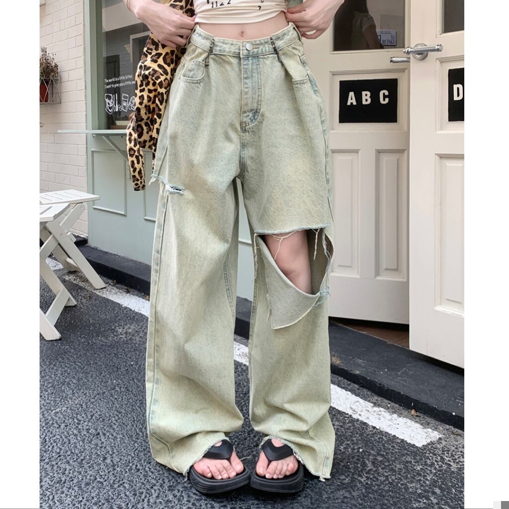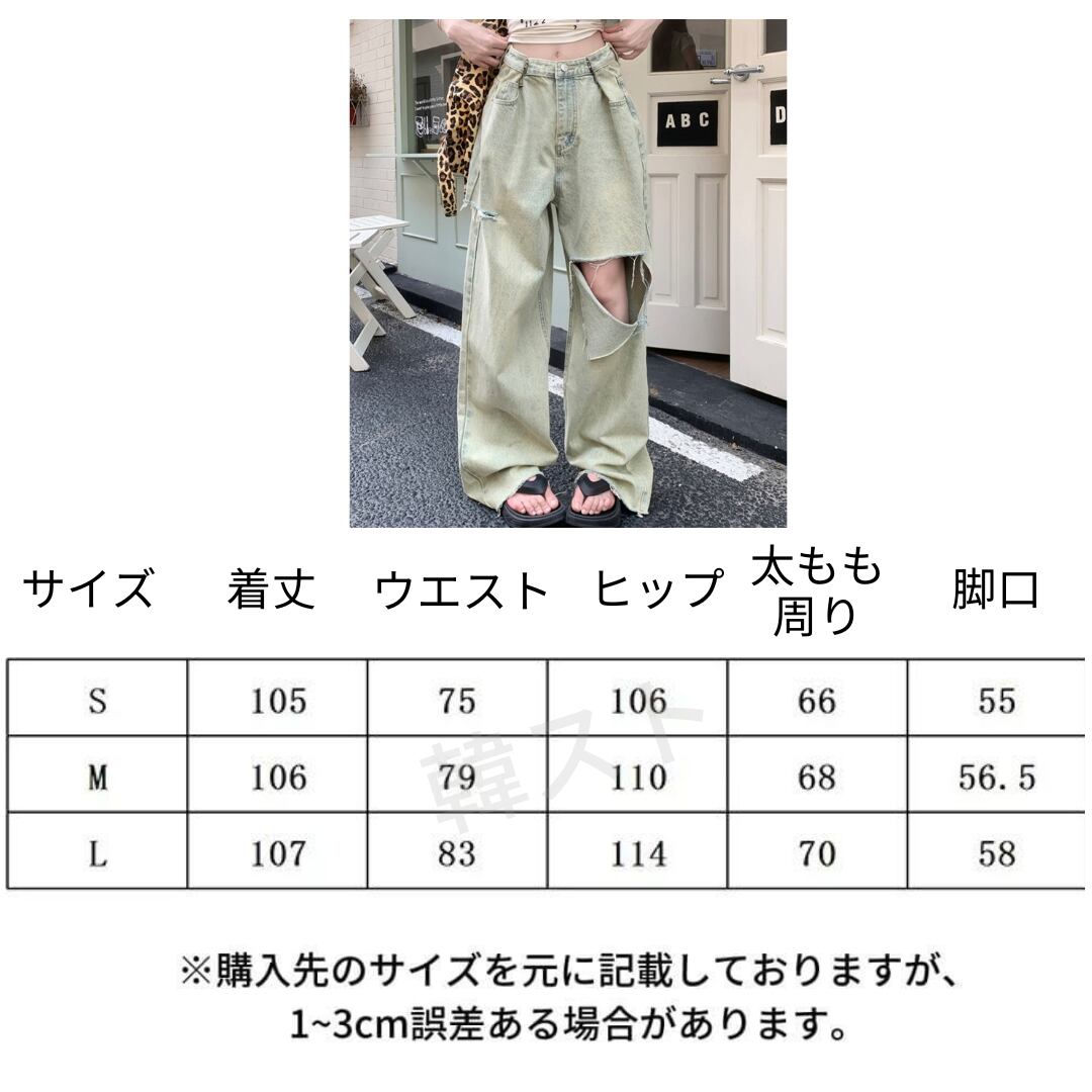ワイドパンツ デニム ダメージ ウォッシュ加工 ゆったり カジュアル