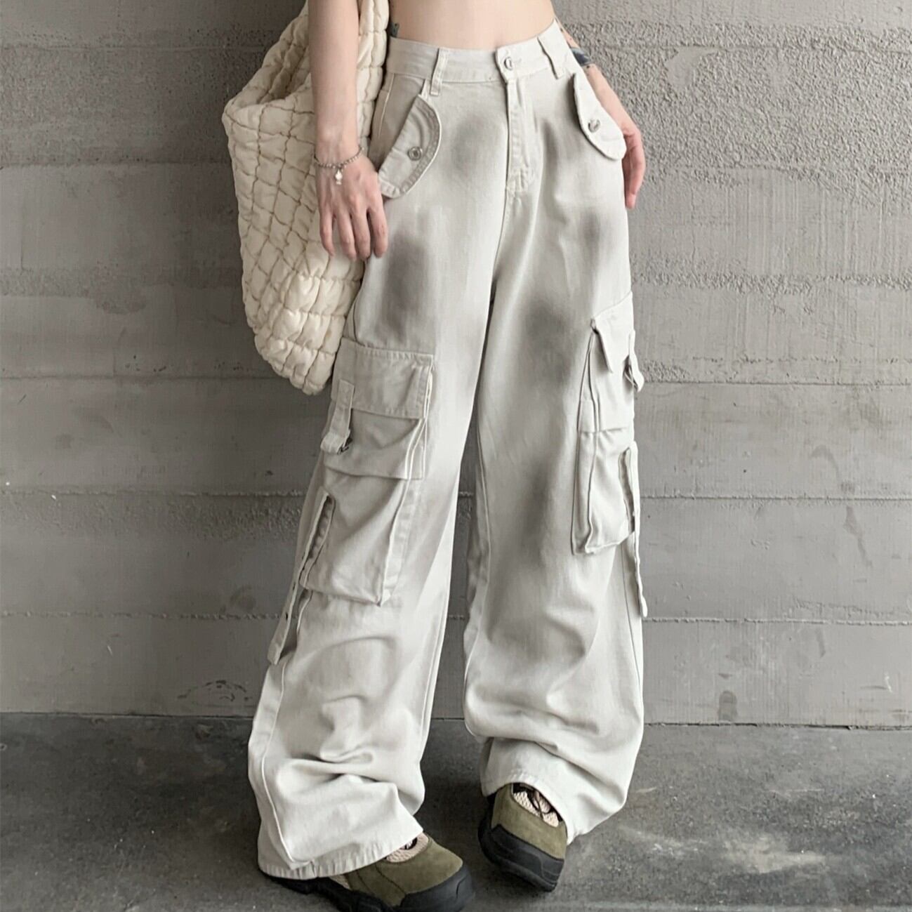 カーゴパンツ ホワイトベージュ デニム ワークパンツ ワイドパンツ カジュアル ストリート
