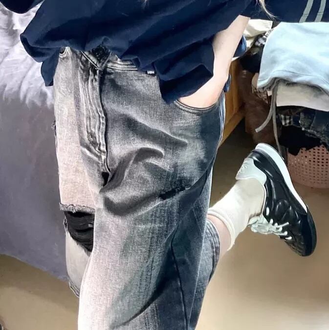ハーフパンツ デニム ダメージ ブラック カジュアル