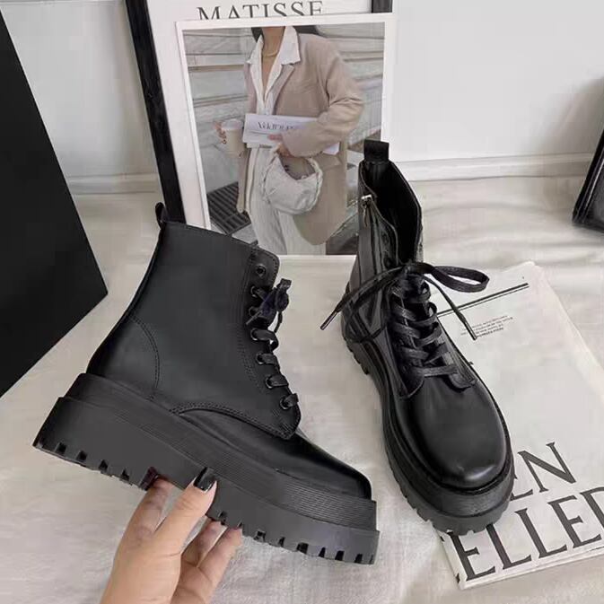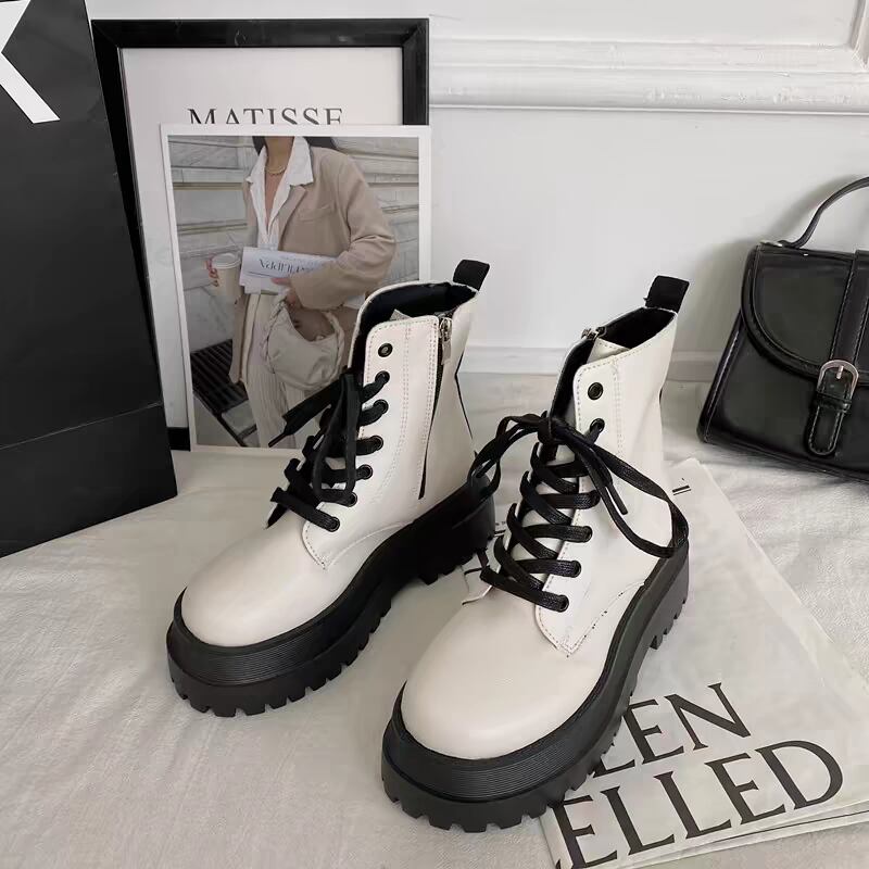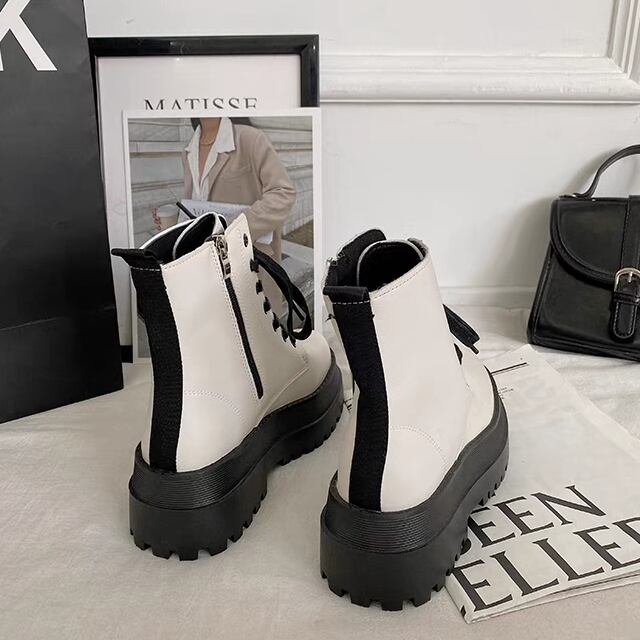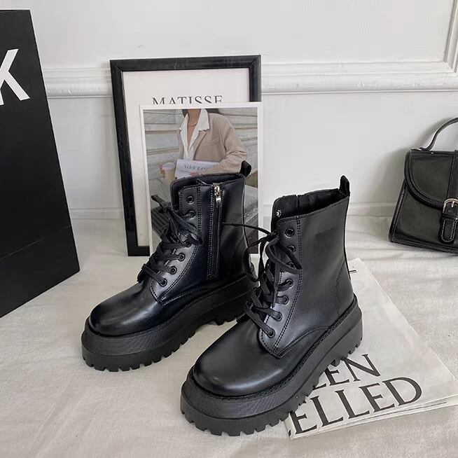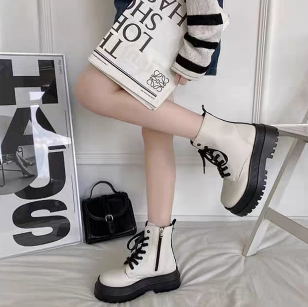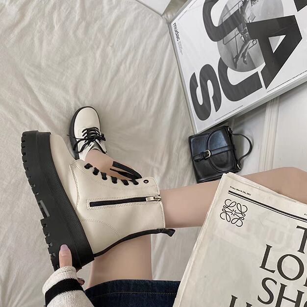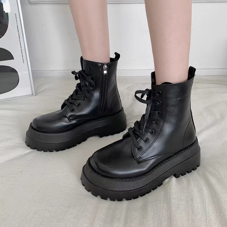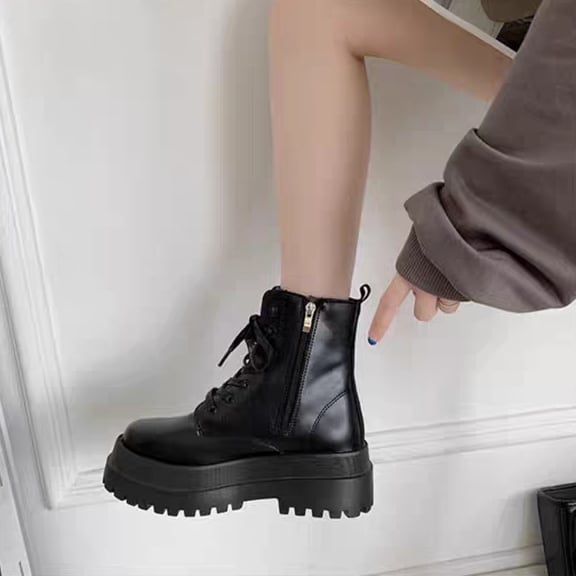 厚底ショートブーツ レースアップ ボリュームソール ジップ レディース