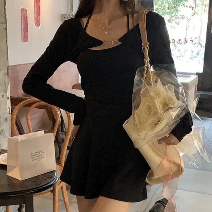 ホルターネックキャミ&ショートカーディガン セットアップ ブラック 韓国 きれいめ 大人っぽい シンプル