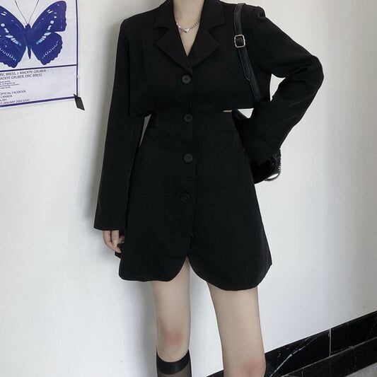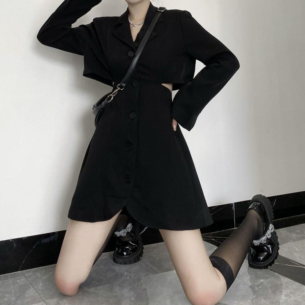 サイドスリット ミニワンピース ジャケット風 ブラック 背中見せ 肌見せ