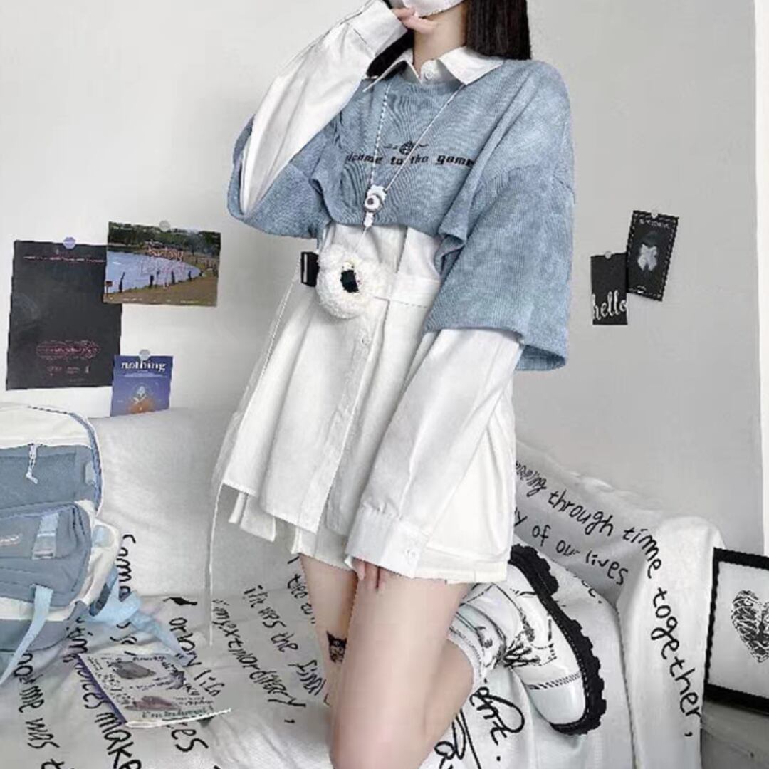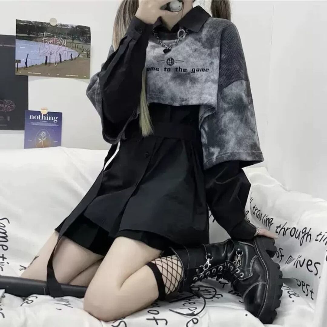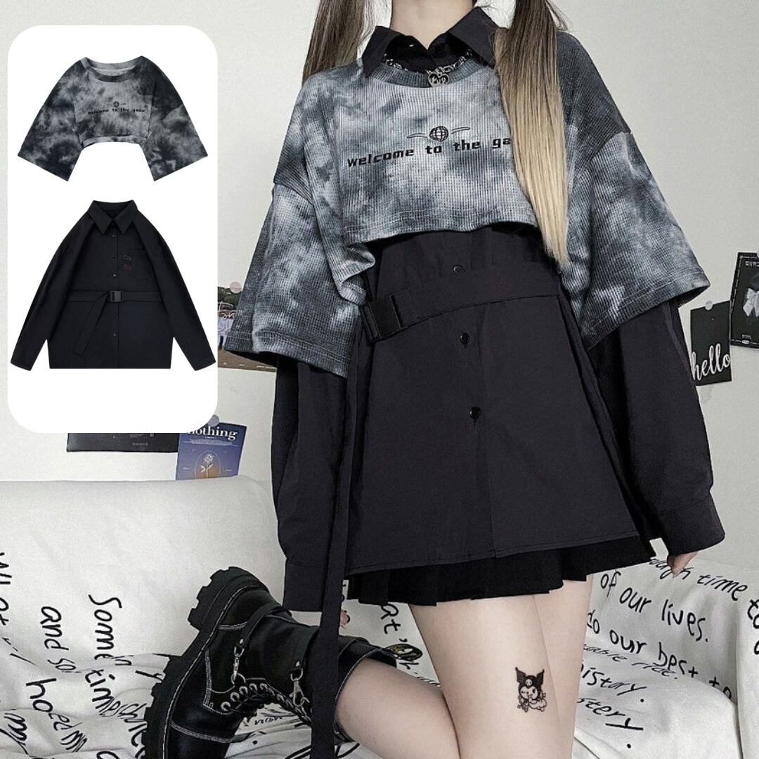 タイダイ柄 クロップドトップス ビッグシャツ セット