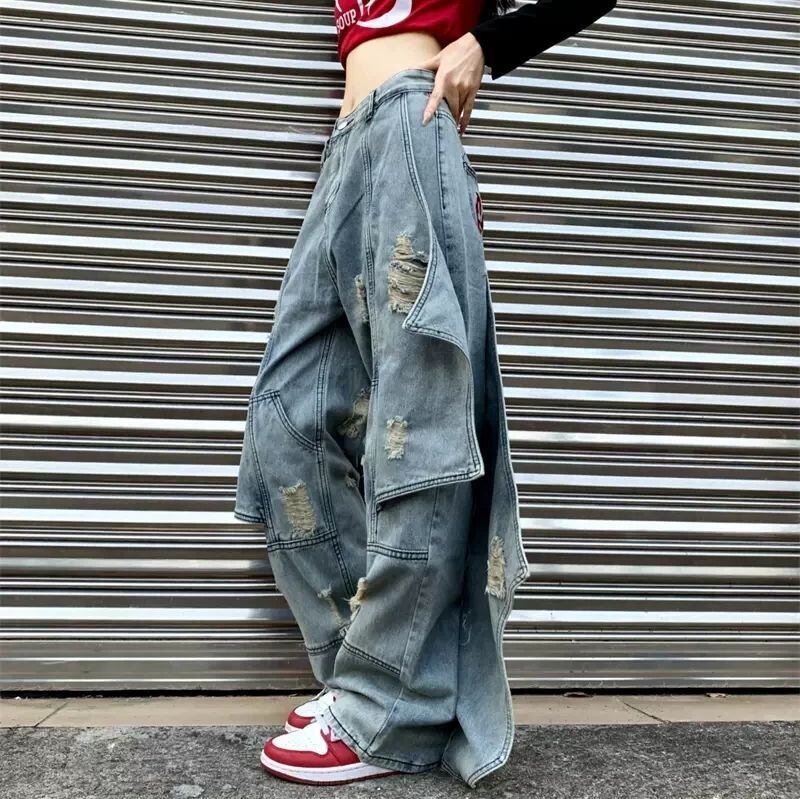 デニムパンツ ワイドパンツ レイヤード風 ダメージ バックデザイン ペイント