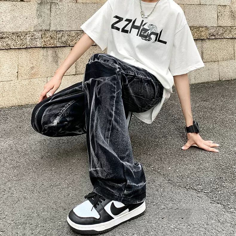 ブラックデニム ダメージデニム ジーンズ パンツ ウォッシュ加工