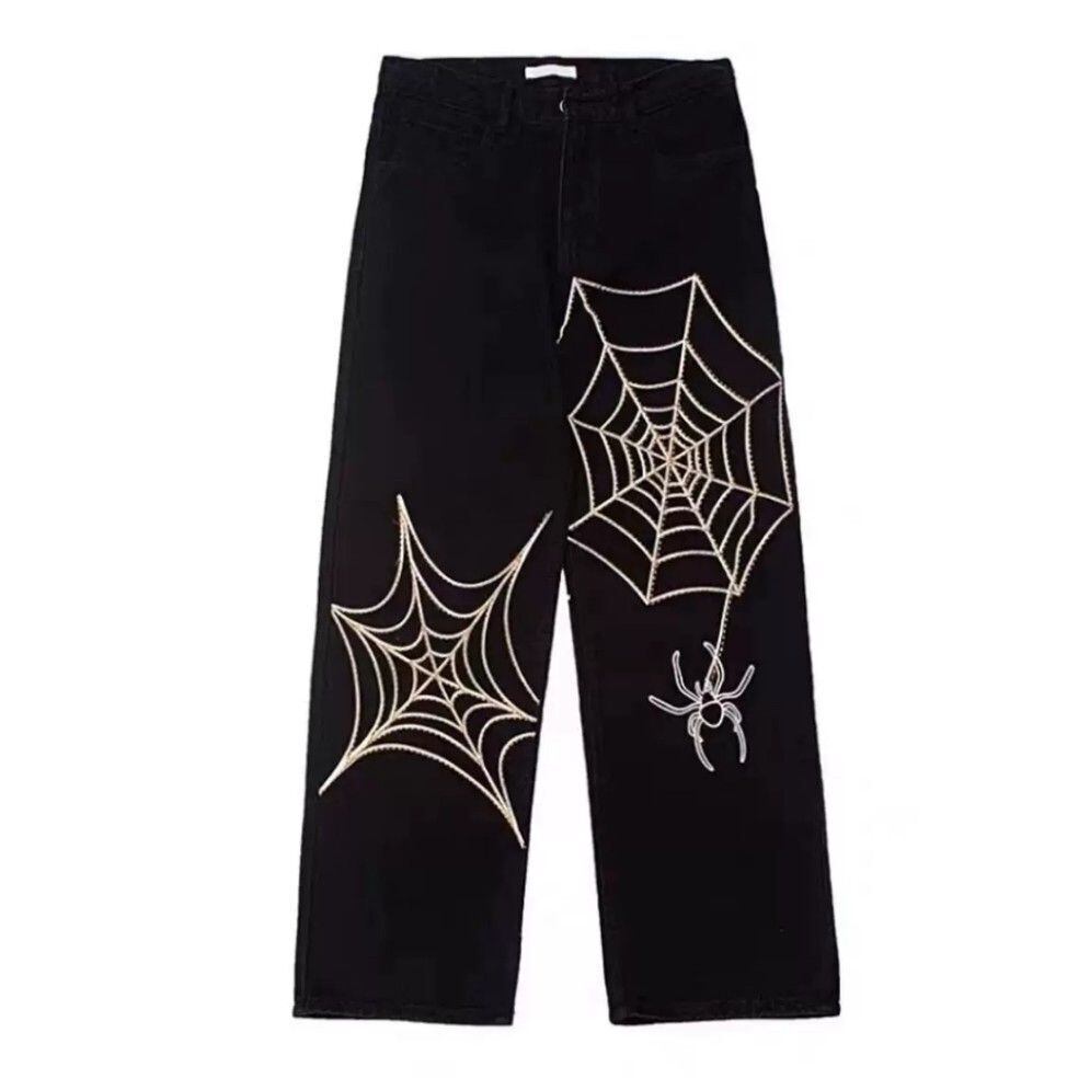 カジュアルパンツ スパイダー クモの巣 クモ ブラック 男女兼用 ストリート
