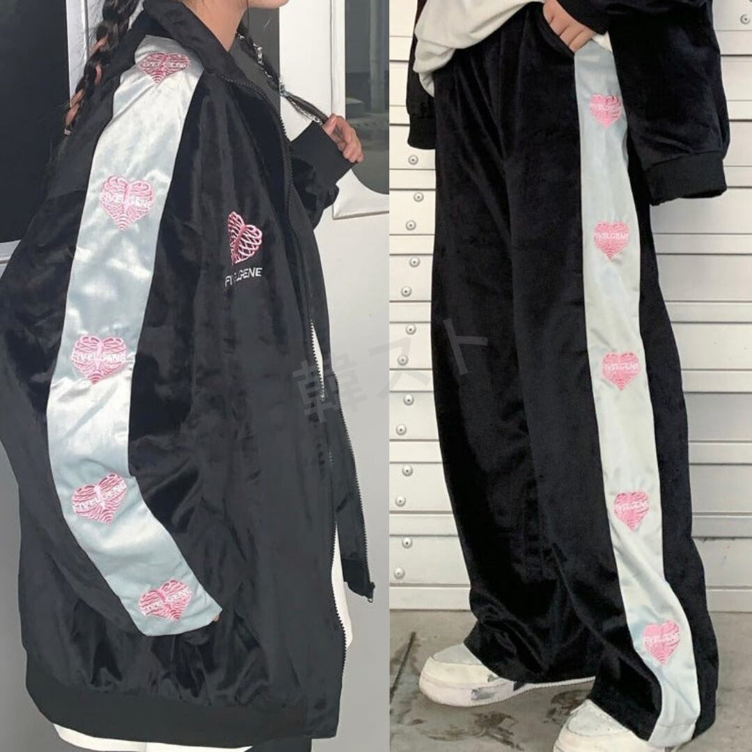 ジャージ セットアップ 太ライン ハート ルーズ感 カジュアル スポーツ ストリート