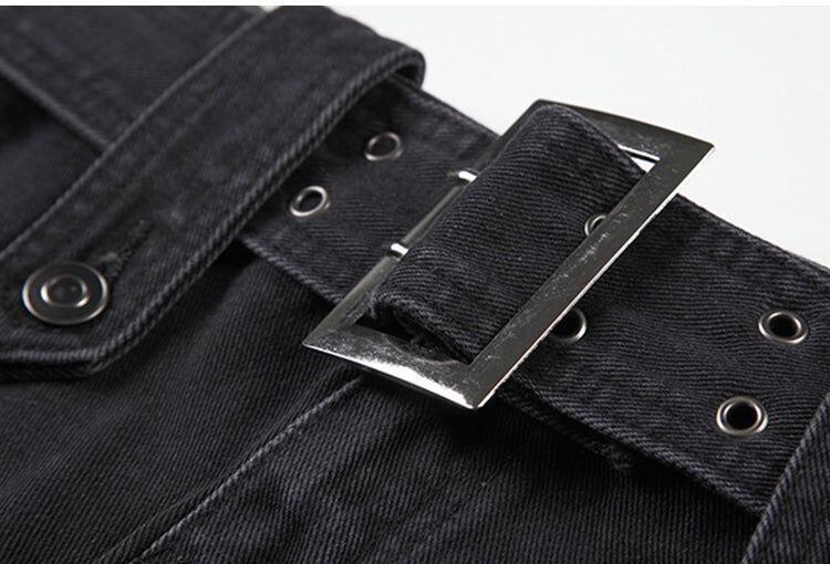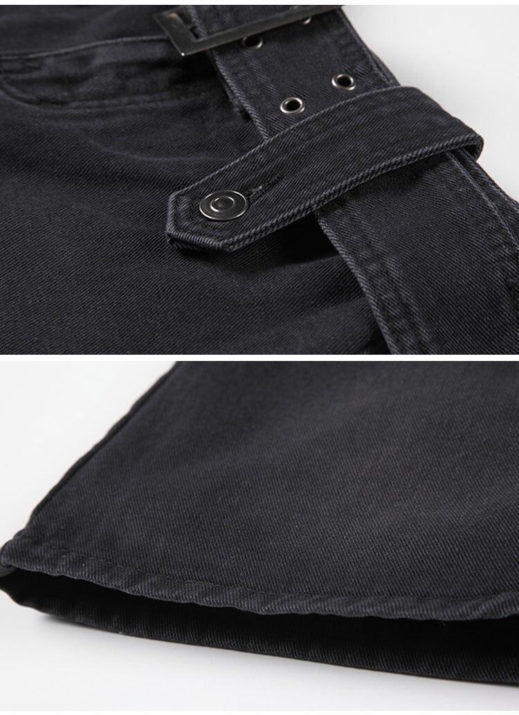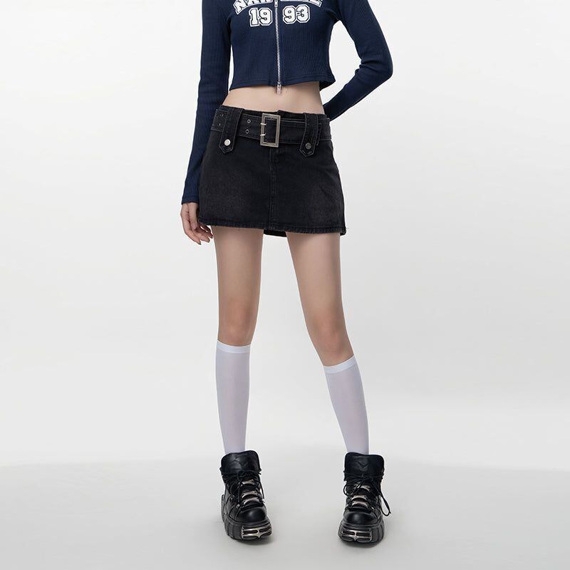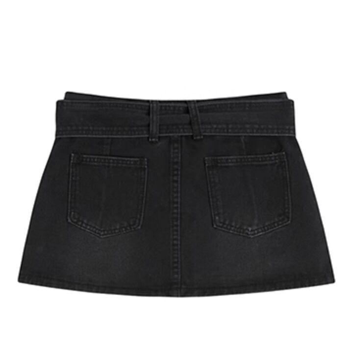 デニムスカート ローライズ ウエストベルト ミニスカート ブラック
