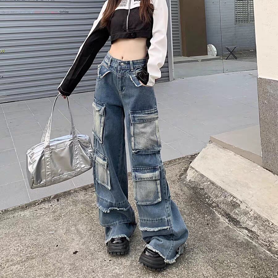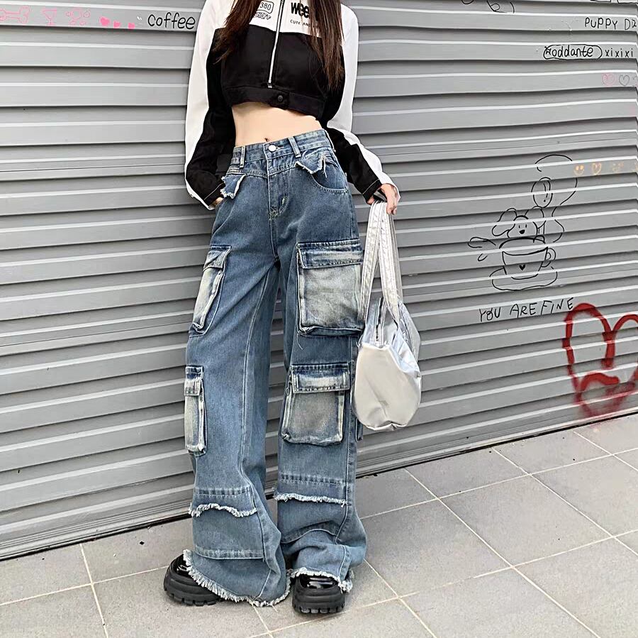カーゴデニム ポケット フリンジ 切りっぱなし ウォッシュド加工