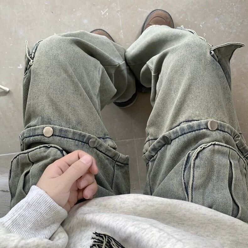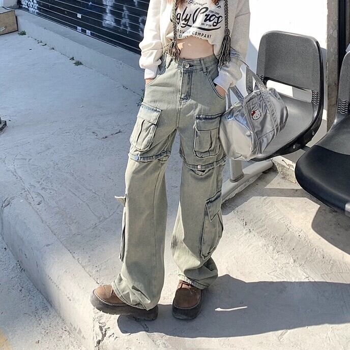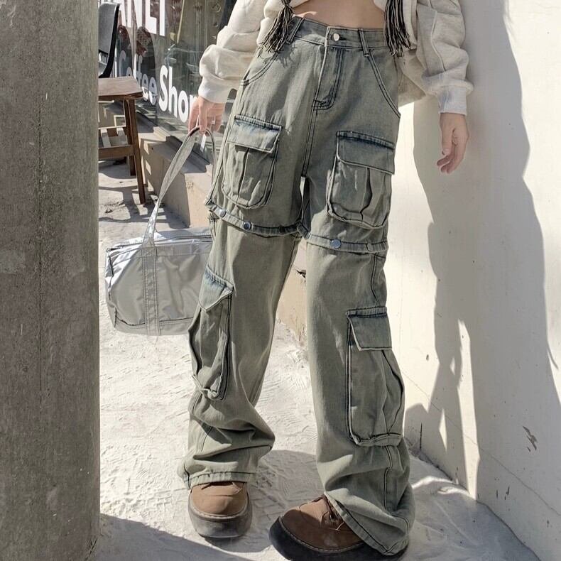カーゴデニム 薄ブルー 2WAY ポケット ウォッシュド 加工 ヴィンテージ風